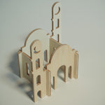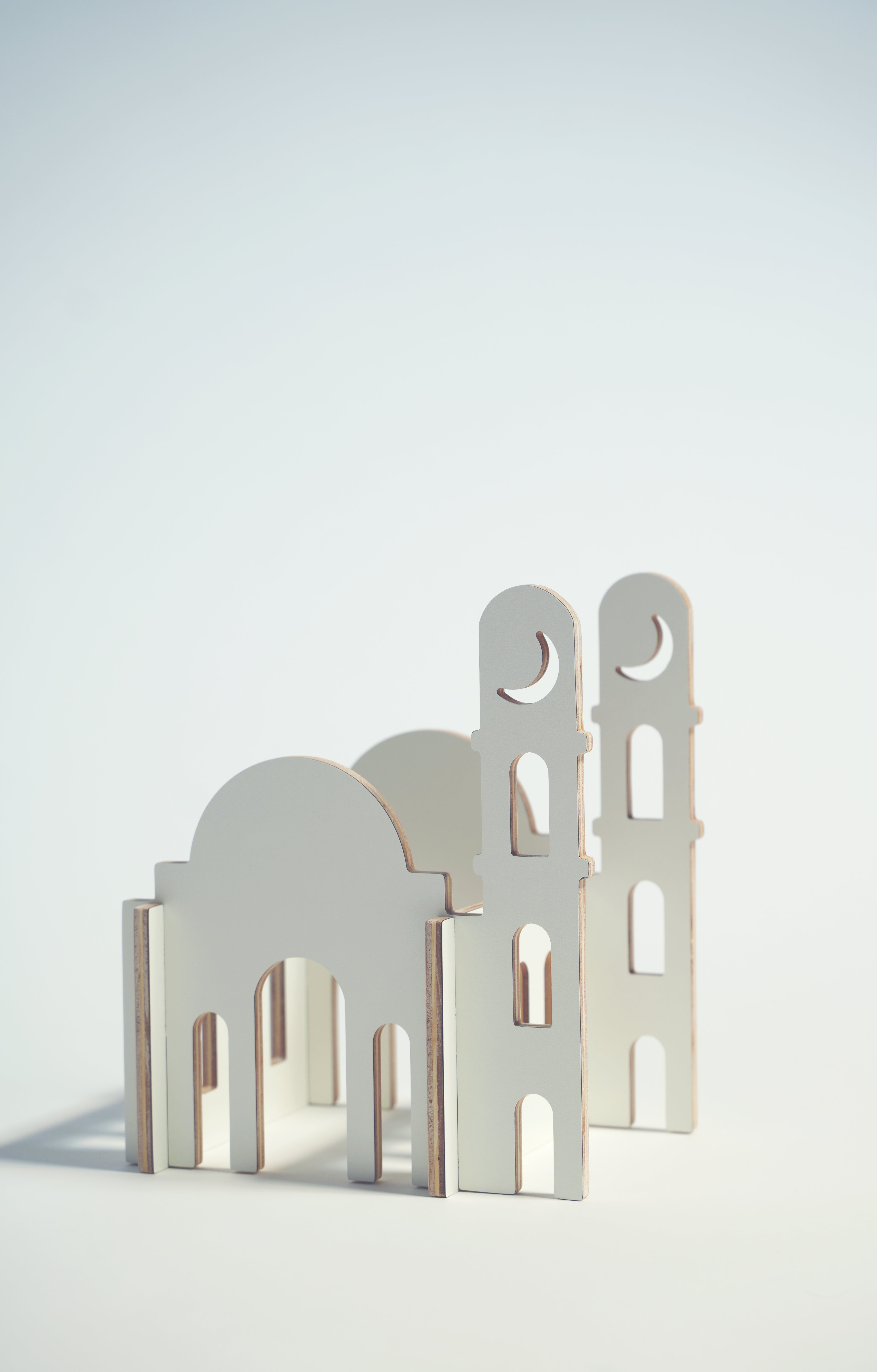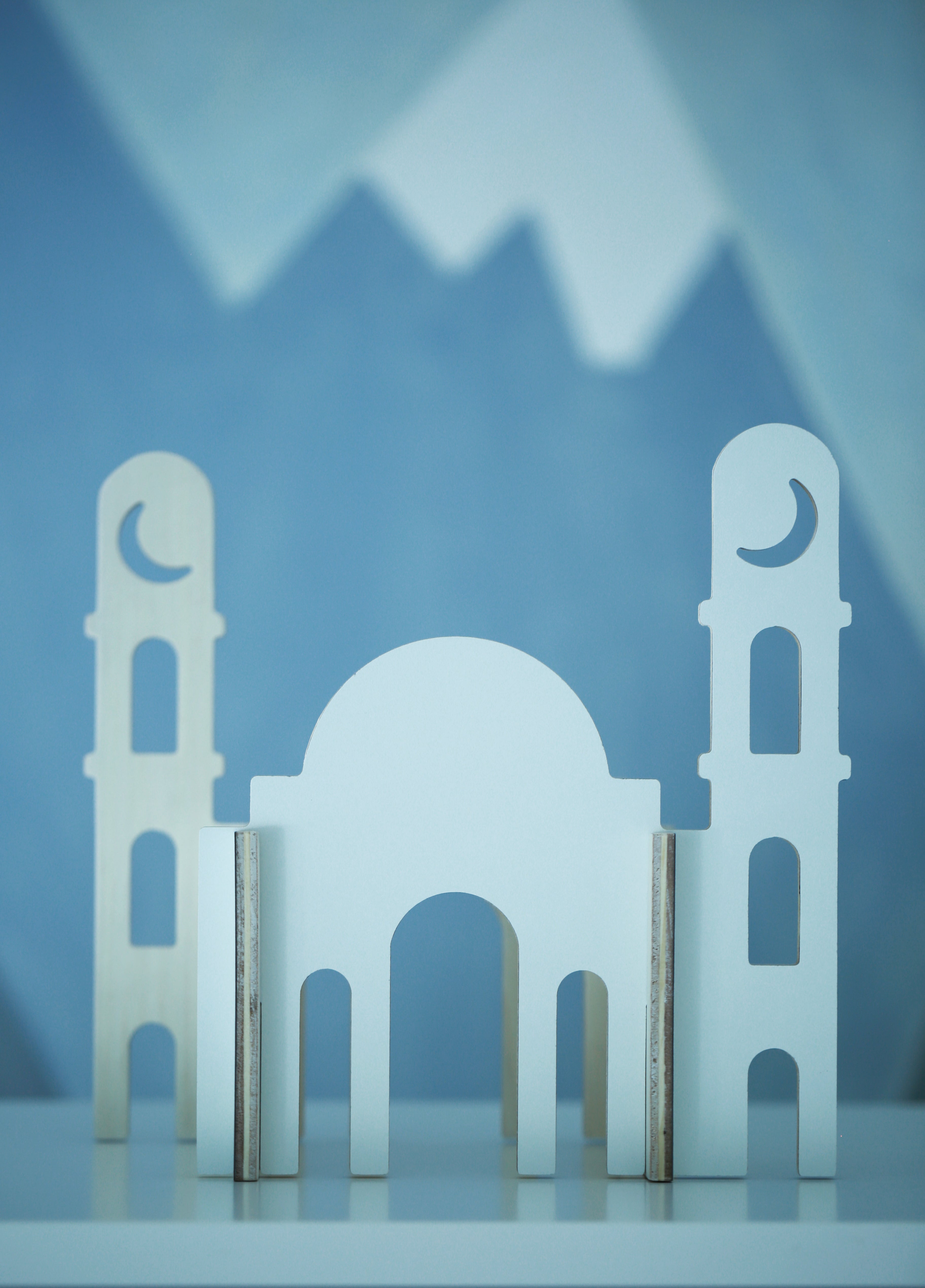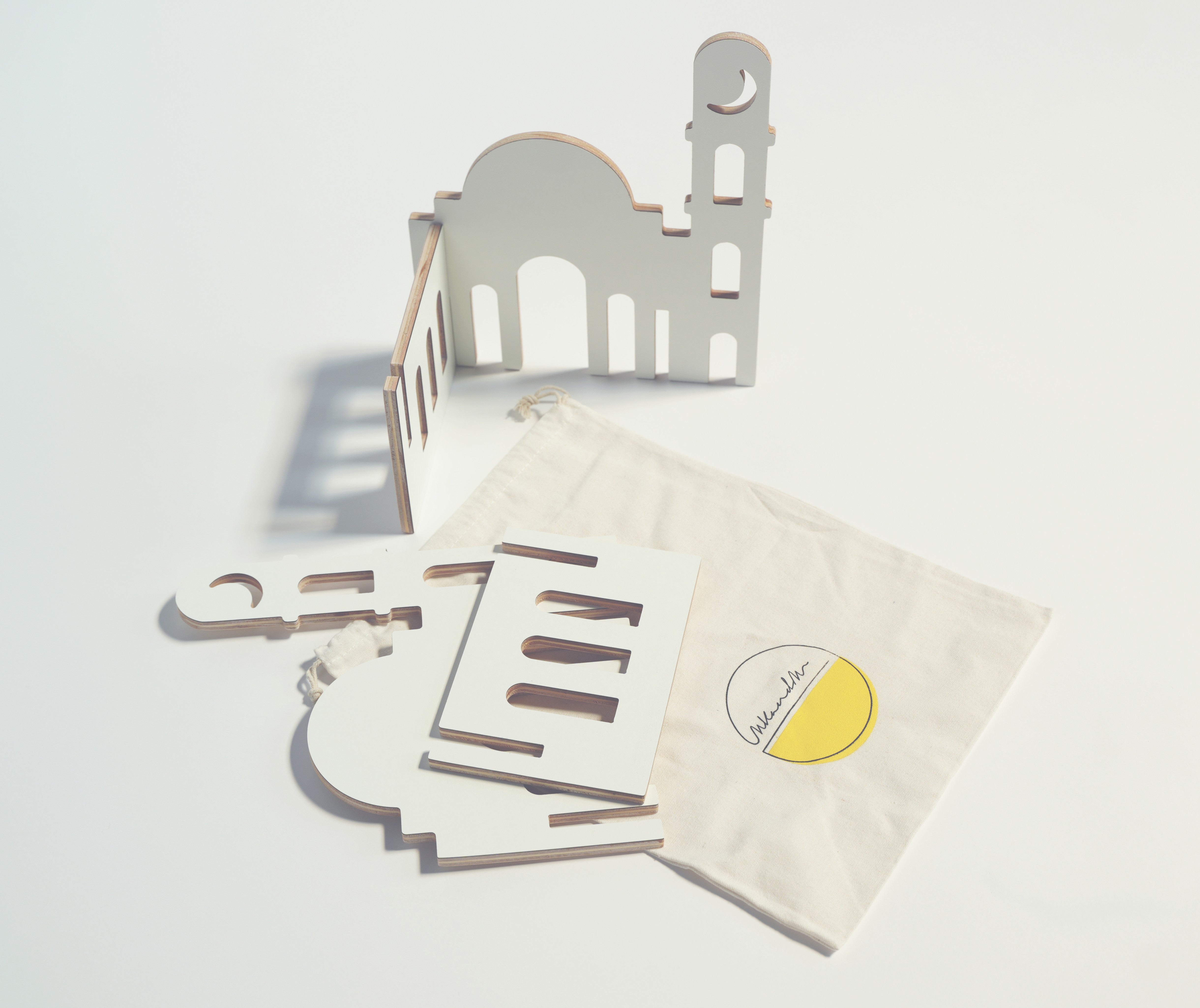 Crafted from sustainable plywood with child-friendly materials, the Masjid features 4 double sided pieces in White and natural wood. Its flatpack, easy to build, store, transport, and rebuild at any time.